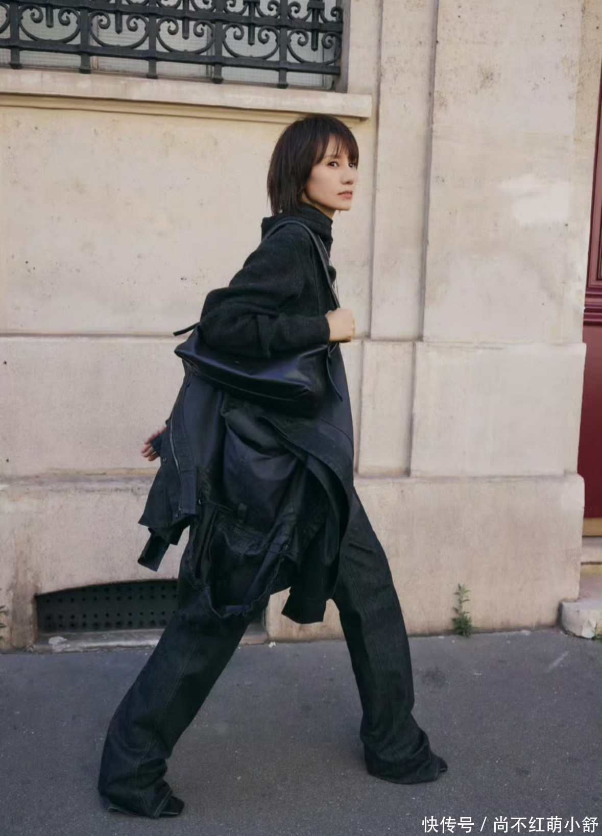这八个字是袁泉的穿搭圣经。她的衣橱里黑白灰占70%,大地色系占20%,偶尔用酒红、墨绿做点缀。所有衣服都遵循“线条流畅、剪裁利落”原则,没有破洞、铆钉、印花这些多余装饰。就连短发都保持“层次分明、长度及耳”,不烫大波浪不染夸张发色,这种“克制感”反而让她在流量明星里成了清流。